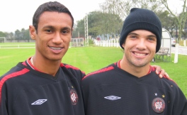 David à direita, na sua passagem pelo Atlético - PR, ao lado do lateral esquerdo Ivan.